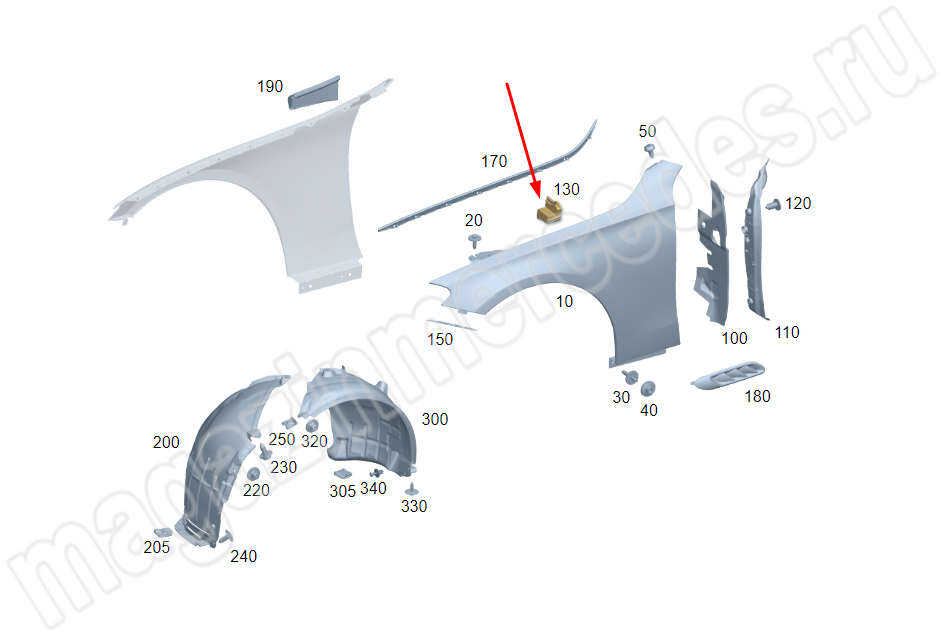 Шумоизоляция переднего левого крыла к кузову Mercedes E Class W214