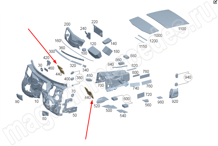Шумоизоляция пола пространства для ног справа Mercedes E Class W214
