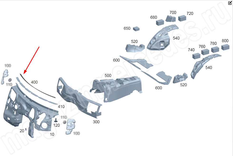 Шумоизоляция поперечины под ветровым стеклом верхняя Mercedes Sl class R232
