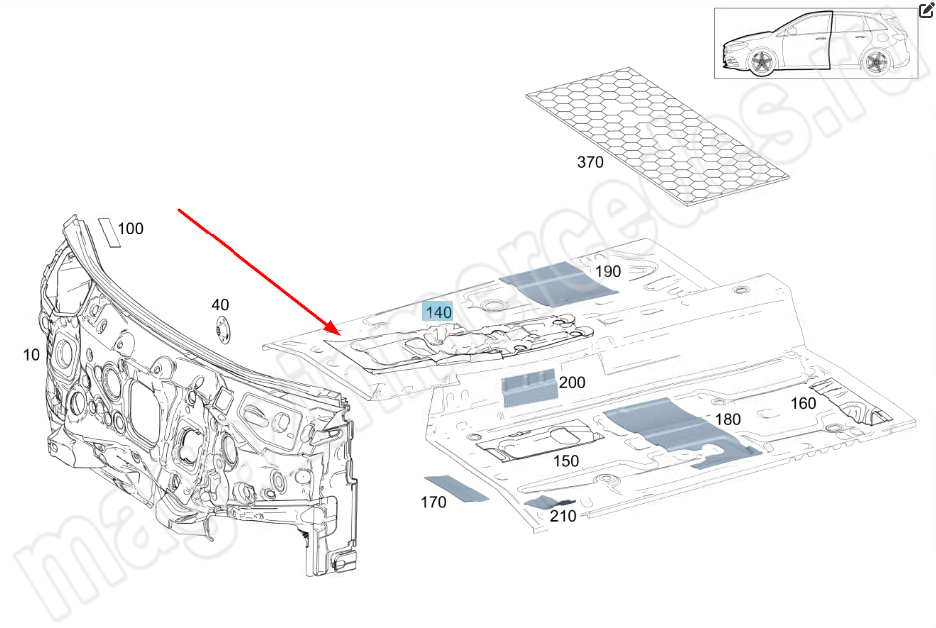 Шумоизоляция туннеля трансмиссии изнутри спереди Mercedes GLB X247