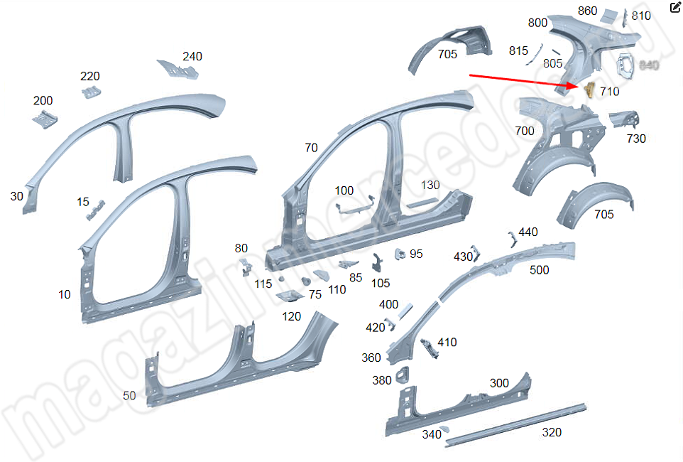 Шумоизоляция задней стенки сверху слева и справа Mercedes E Class W214