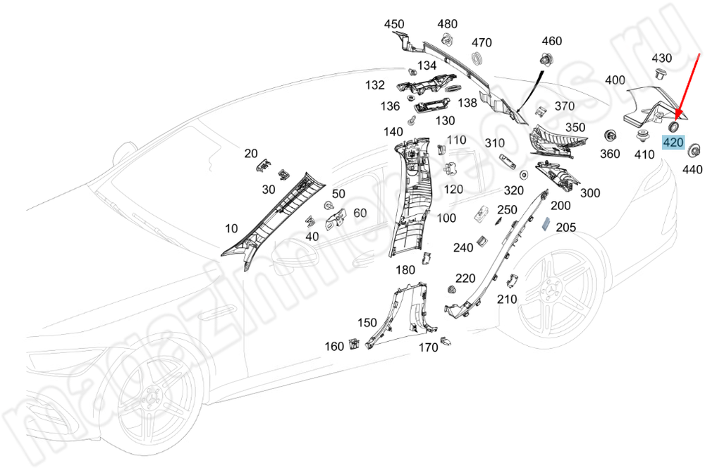 Скоба облицовки задней стойки кузова Mercedes AMG GT X290