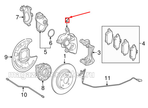 Скоба суппорта с поршнем правый Mercedes CLA Class C117