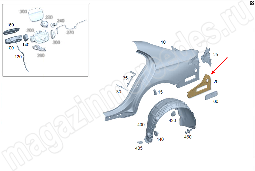 Соединительная пластина заднего крыла слева Mercedes E Class W214
