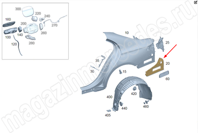 Соединительная пластина заднего крыла справа Mercedes E Class W214