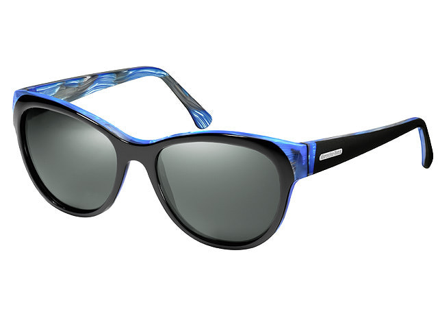 Оправа из итальянского ацетата черного цвета. Внутренняя сторона цвета «Тихоокеанский синий» металлик. Стекла Zeiss серо-зеленого цвета. Категория фильтра – 3.
