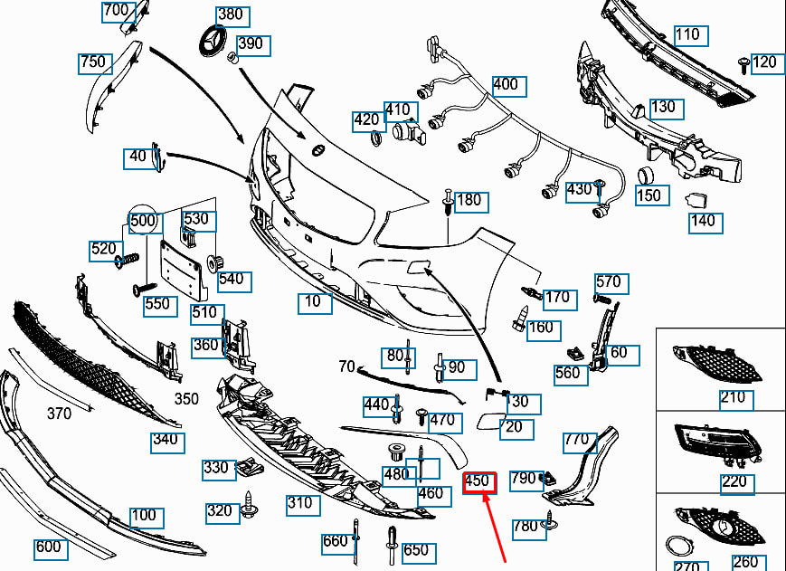 Спойлер элерон перед бампера правый AMG Mercedes A Class W176