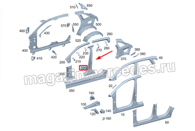 Средняя стойка кузова снаружи слева