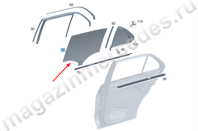 Стекло задней левой двери Mercedes GLE Class V167