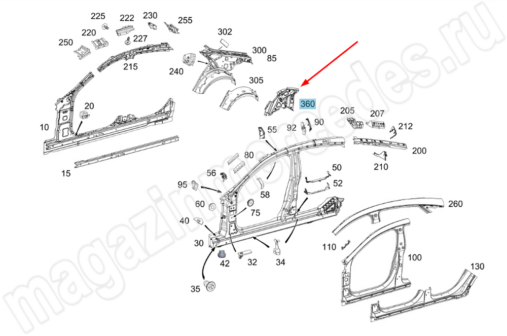 Стойка кузова снаружи слева Mercedes AMG GT X290