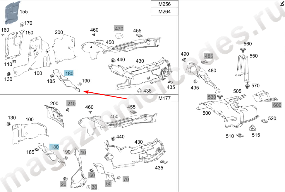 Тепловой экран интегральной балки справа Mercedes GLE Class V167