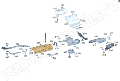 Тепловой экран выхлопной системы нижний в центральной зоне