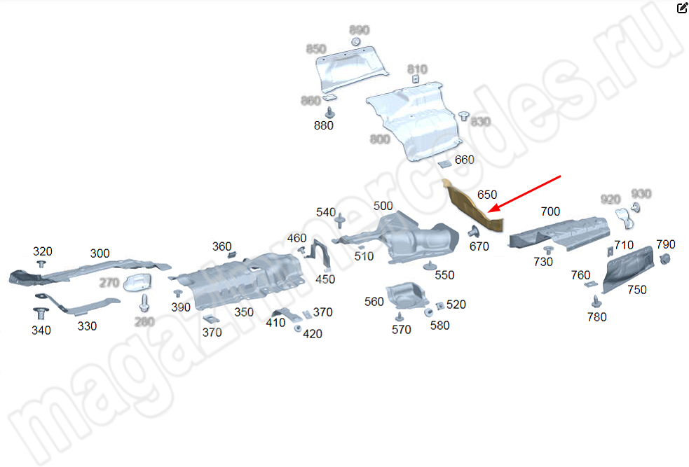 Тепловой экран выхлопной системы сзади посередине