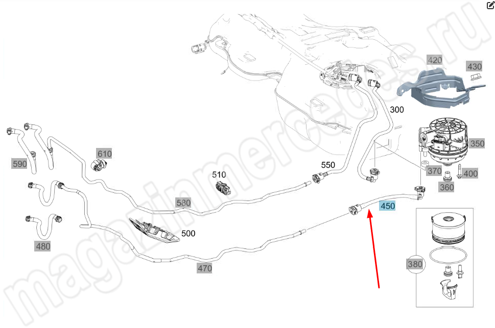 Топливопровод от топливного фильтра к разъему Mercedes GLB X247