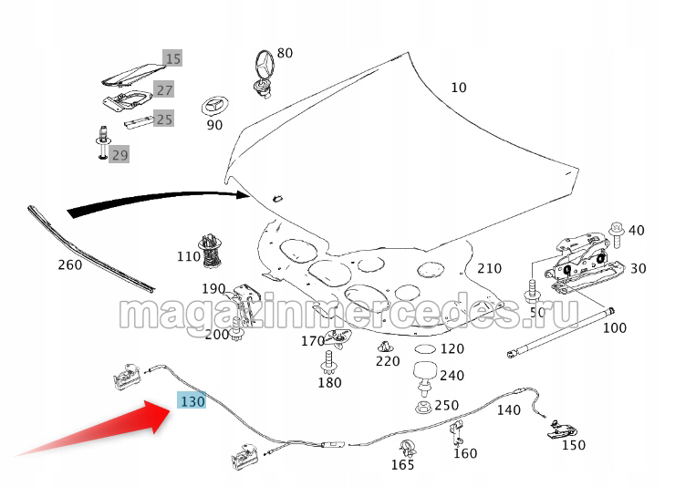 Трос капота передняя часть Mercedes C CLass W204
