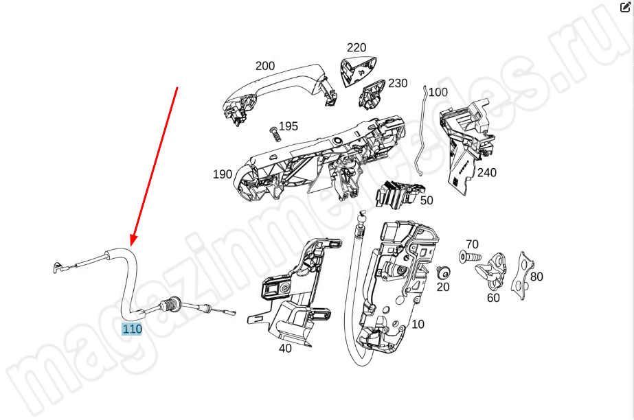 Трос замка двери передней левой или правой Mercedes EQB Class X243
