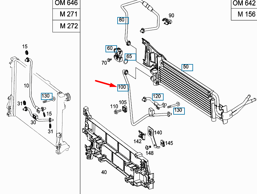 Трубка радиатора охлаждения масла левая Mercedes C Class W204