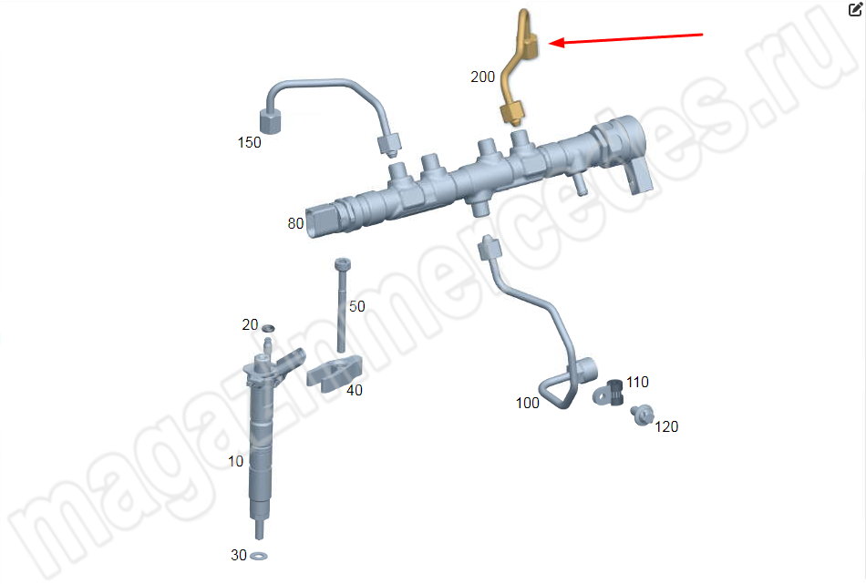 Трубка топливной рампы 3 и 4 цилиндр Mercedes E class W214