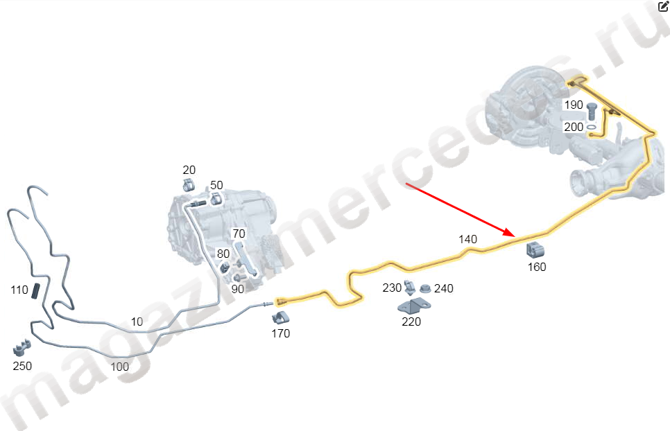 Трубка вентиляционная раздаточной коробки от разъема к заднему мосту Mercedes G class W465