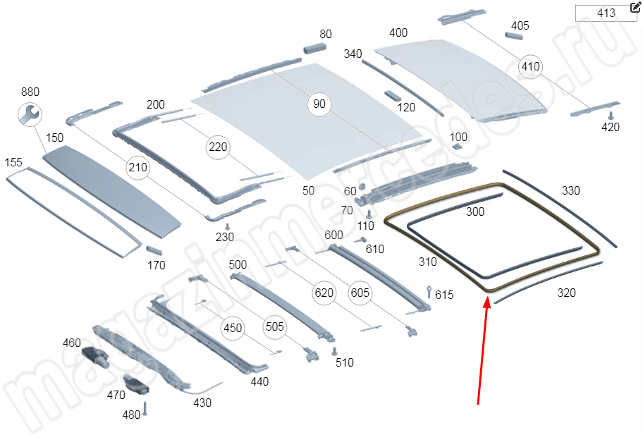 Уплотнение центральной секция стеклянной крыши (внешняя сторона) Mercedes E Class W214