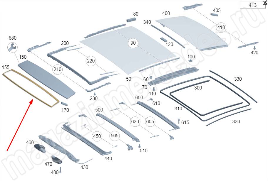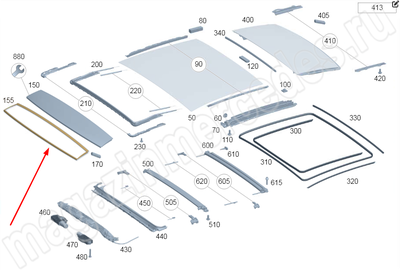 Уплотнение сдвижного люка крыши спереди Mercedes E Class W214
