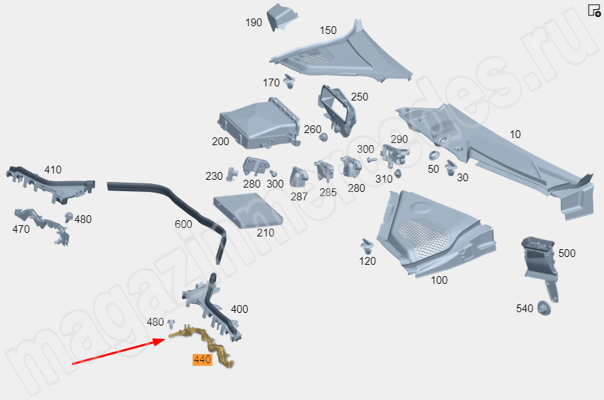 Уплотнение воздушного канала снизу слева Mercedes E Class W214