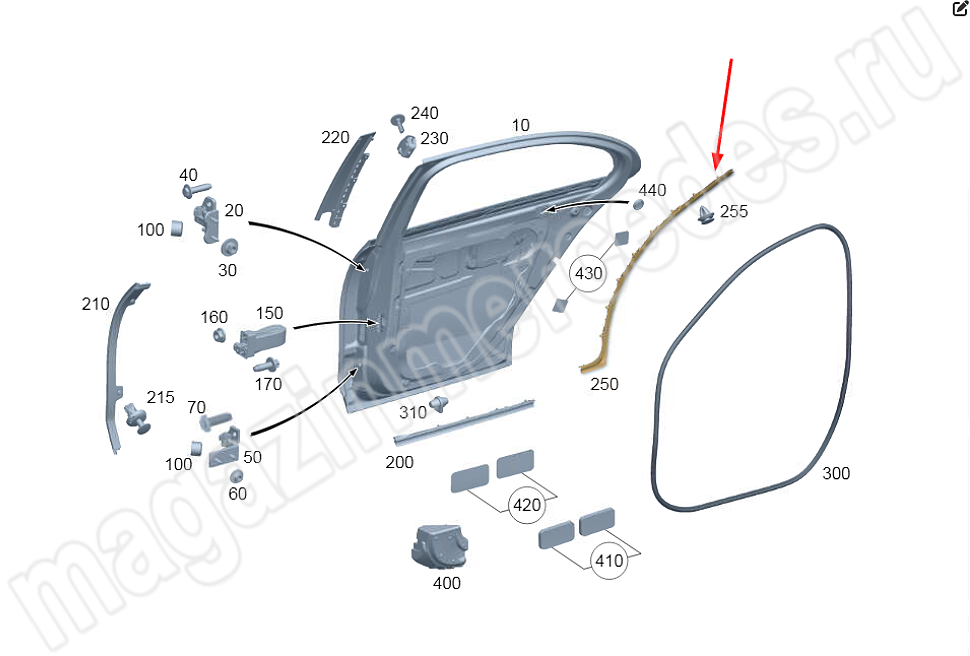 Уплотнение задней левой двери сзади Mercedes E Class W214