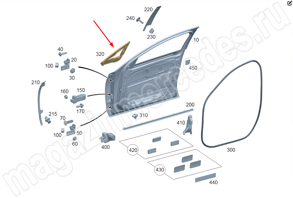 Уплотнение зеркала заднего вида передней левой двери Mercedes E Class W214