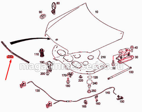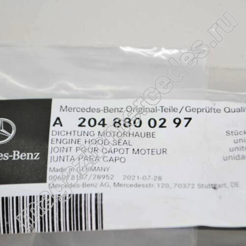 Уплотнитель капота передняя часть Mercedes C Class W204