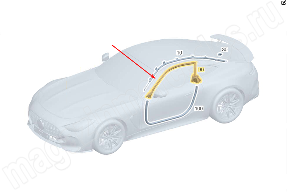 Уплотнительная рамка кромки вверху - проем под переднюю дверь слева Mercedes AMG GT C192