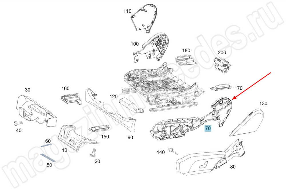 Усиливающий элемент подушки переднего сиденья внешний (правое сиденье) Mercedes EQC Class N293