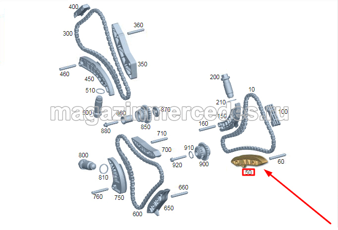 Успокоитель цепи ГРМ нижний левый Mercedes C Class W205