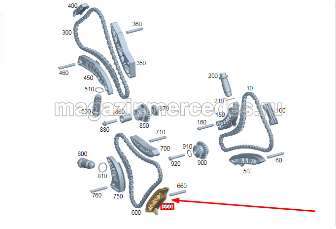 Успокоитель цепи нижний левый Mercedes C Class W205