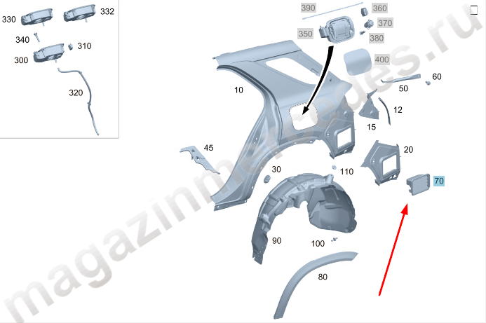 Вентиляционная заслонка заднего крыла слева Mercedes GLE Class V167