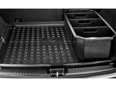 Надежный пластиковый багажный ящик помогает поддерживать порядок в багажнике. Он позволяет надежно перевозить мелкие предметы, сумки с покупками или бутылки. Ящик прост в транспортировке, он легко крепится с помощью входящих в комплект лент с "липучками": или к расположенным багажнике проушинам, или на рифленой структуре поддона багажника. В комплект поставки входит три перегородки, при помощи которых Вы можете сделать в ящике до четырех отделений. Объем: 66 литров.