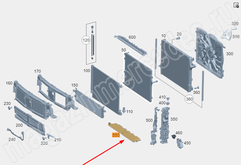 Воздуховодный сегмент радиатора нижний Mercedes E class W214