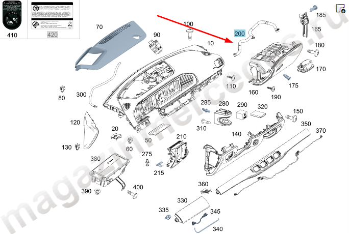 Воздушный канал короба перчаточного ящика Mercedes GLE Class V167