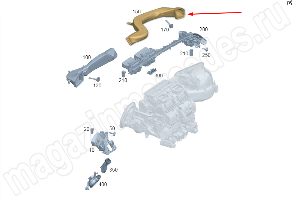 Воздушный канал от короба кондиционера к дефлектору переднего пассажира Mercedes E Class W214
