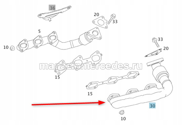 Выпускной коллектор левый M642 Mercedes C Class W204