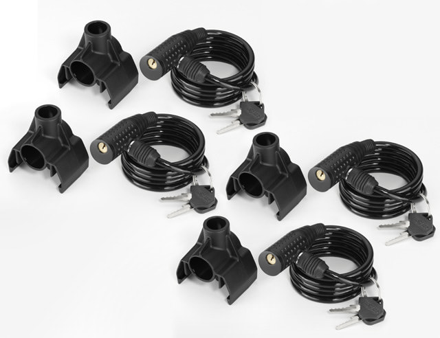 Двойная польза: спиральный замок защищает крепление и велосипеды при транспортировке и во время остановок – например, для велосипедных прогулок.