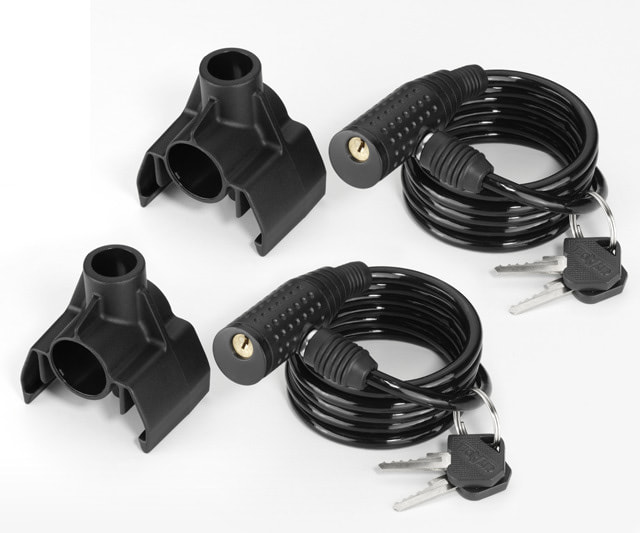 Двойная польза: спиральный замок защищает крепление и велосипеды при транспортировке и во время остановок – например, для велосипедных прогулок.