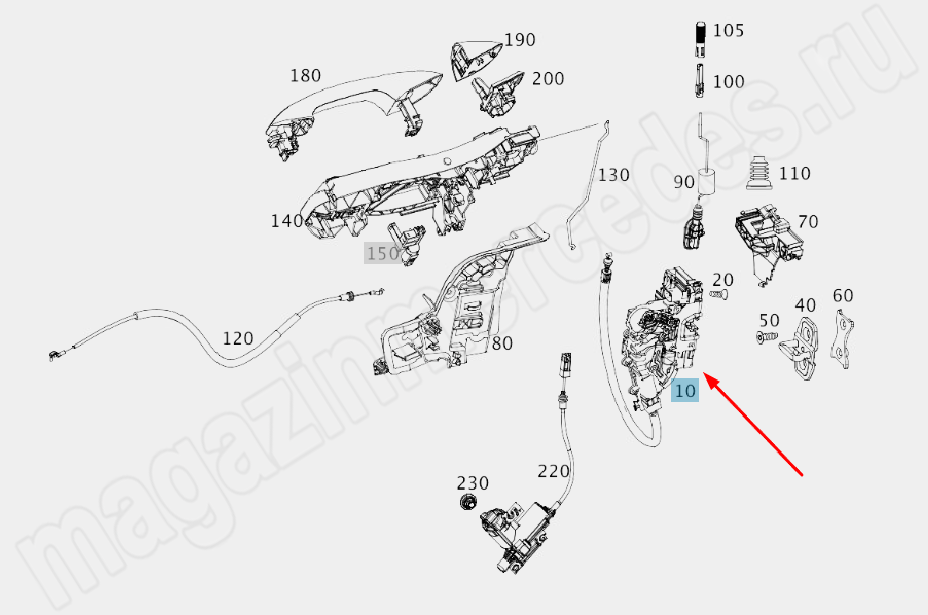 Замок передней правой двери Mercedes