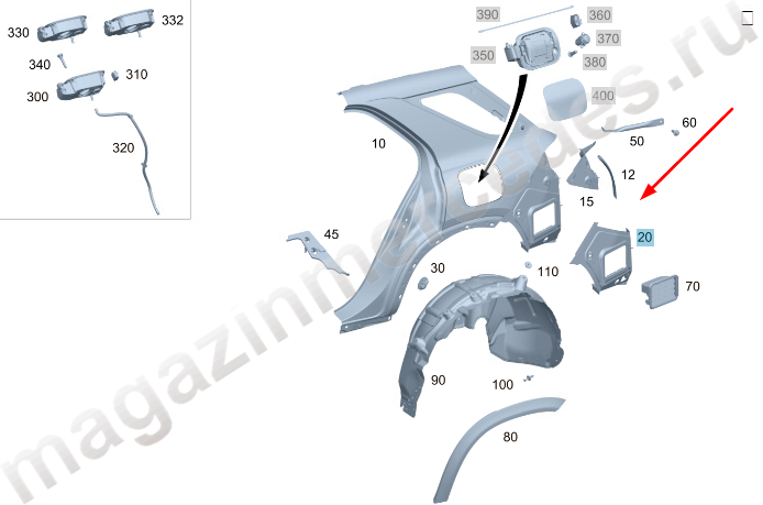 Замыкающая стенка заднего крыла справа Mercedes GLE Class V167