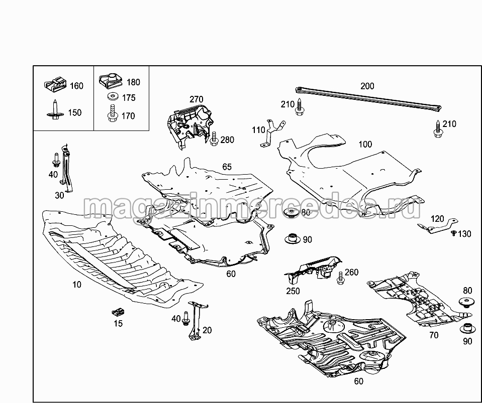 Защита двигателя средняя пластиковая Mercedes C Class W204