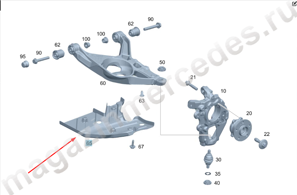Защита нижнего поперечного рычага задней подвески слева Mercedes