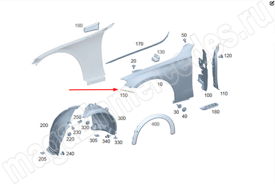 Защита от перетирания переднего правого крыла Mercedes E Class W214