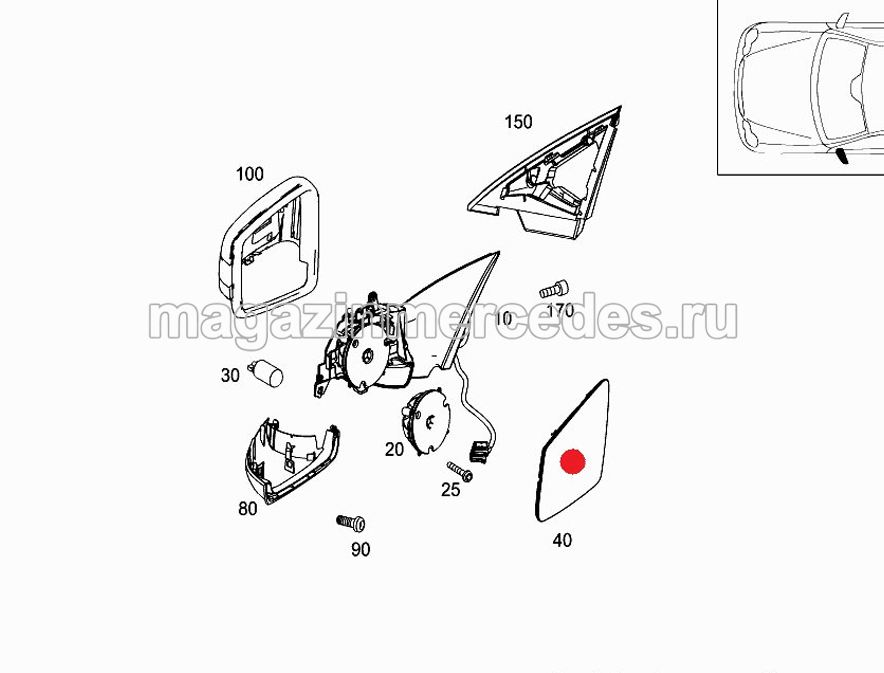 Зеркальный элемент левый с автозатемнением Mercedes C Class W204