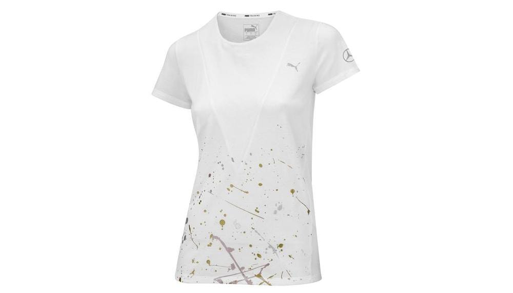 носить - даже во время напряженных занятий. Цветной абстрактный принт. Звезда Mercedes на рукаве. Основной цвет: белый. Материал: 50% полиэстер / 25% хлопок / 25% вискоза. Сделано для Mercedes-Benz компанией PUMA. XS - B66959069, S - B66959070, M - B66959071, L - B66959072, XL - B66959073