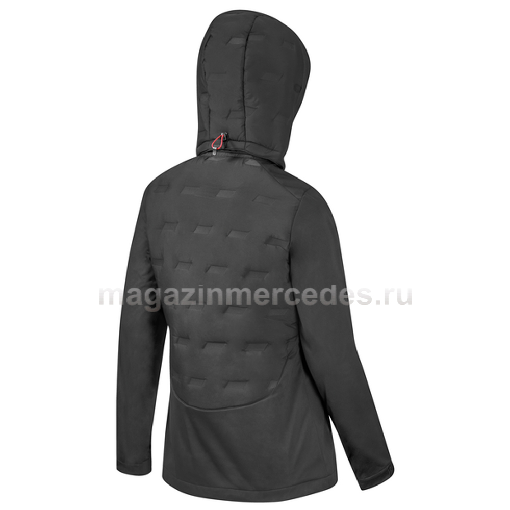 Жилет AMG hybrid для любой погоды: сочетает в себе биэластичный софтшелл и мини-рипстоп для защиты от ветра и холода. Съемный стеганый капюшон, приталенный крой. Низ завязывается шнурком, манжеты регулируются на липучке. Черный пластиковый значок с белым 3D-логотипом AMG в качестве акцента.