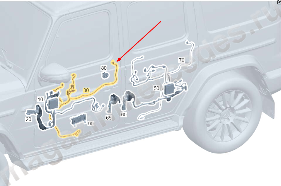 Жгут проводки передней правой двери от блока управления к потребителю Mercedes EQG
